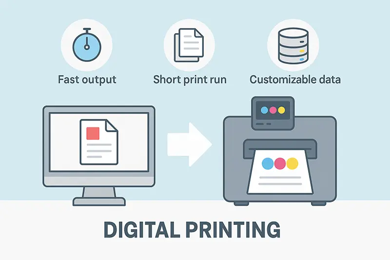 For short runs, personalized items, and fast delivery—digital printing is your best bet.